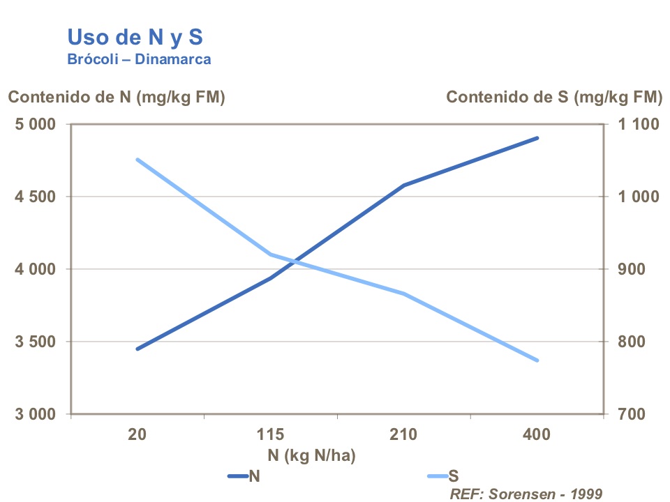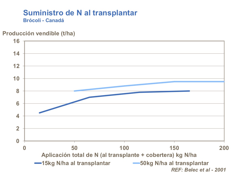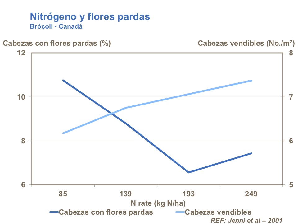 Una fertilización nitrogenada tambien mejora el color del cultivo y reduce la incidencia de cabeza marrón en brócoli, así mejorando la comerciabilidad.