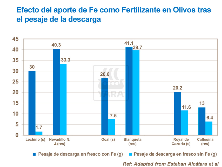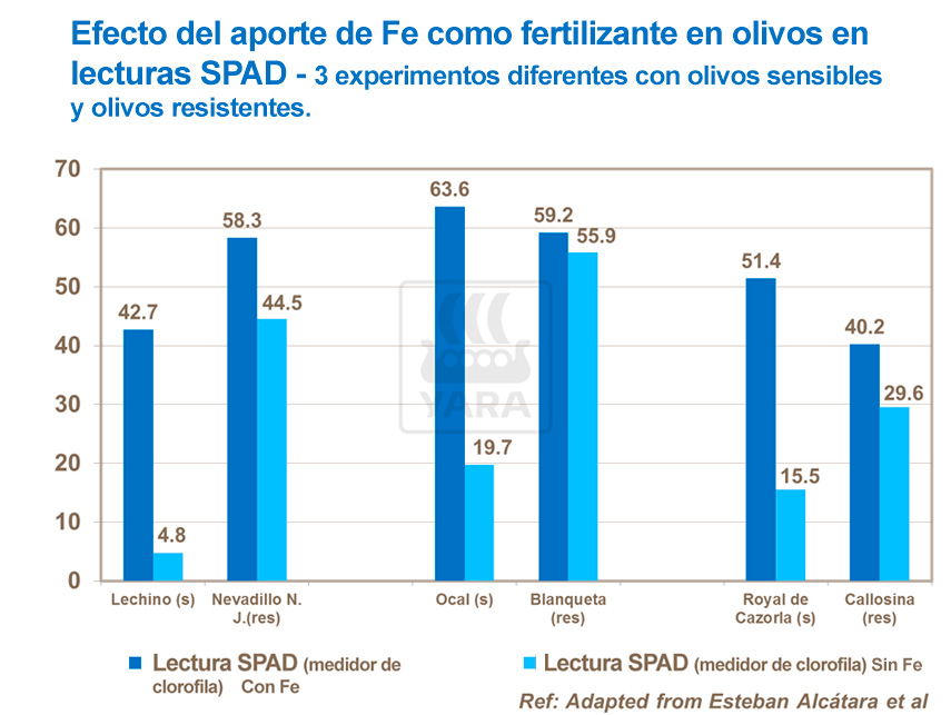 La aplicación de Hierro al suelo en forma de quelato, es un modo eficaz de reducir la aparición de clorosis férrica. En un ensayo realizado durante 3 años, haciendo crecer pequeñas plantas en un suelo calizo que contenía cultivos sensibles y cultivos resistentes a la clorosis (8 de 15 cultivares distintos), la aportación de Hierro en forma de quelato redujo de forma significativa los síntomas de la clorosis férrica.